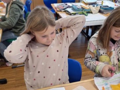 Am 04.06.2025 besuchten die Kinder der 1a und der 1b Klasse den Bauernhof von Frau Ulla Lienzer. Begeistert mahlten die Kinder Getreidekörner, fütterten die Hühner und Kühe, probierten sich beim Melken, lernten wie aus einem Küken ein Ei wird, beobachteten die Laufentenküken, streichelten die Katzenbabys und sammelten Blüten und gestalteten damit Mandalas. Verwöhnt wurden wir mit einer Bauernhofjause, die köstlich schmeckte.